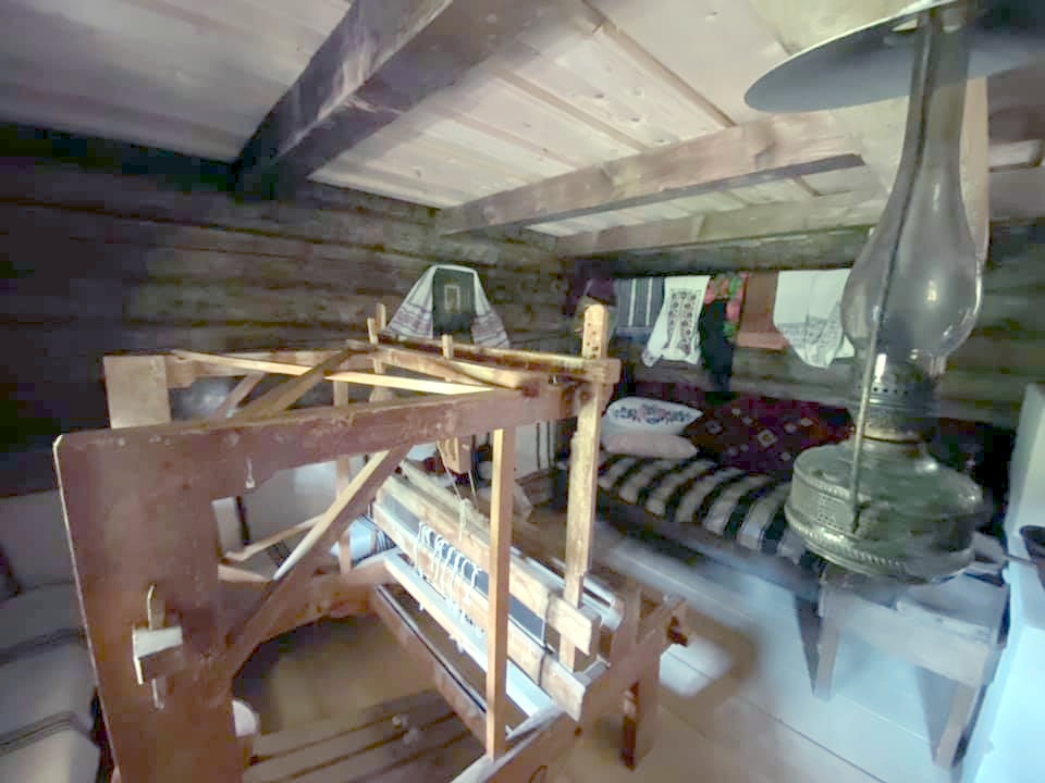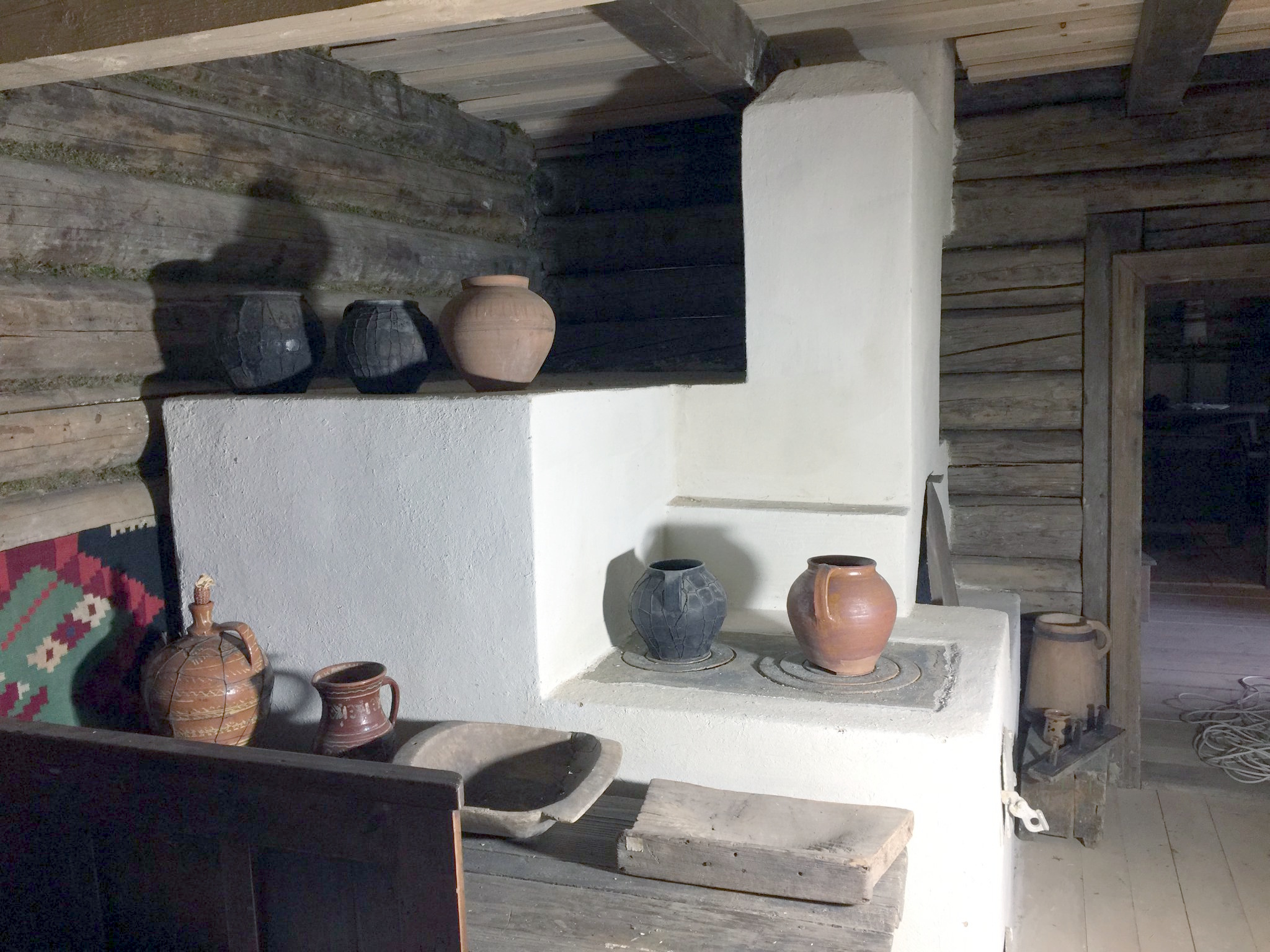 За пічкою знаходиться ліжко. Воно покрито соломою та вкрито ліжником. Над ліжком висить горизонтальний килим прикрашений геометричним орнаментом. Над ним – жердка з буденним одягом. Між ліжком та чільною стіною знаходиться ткацький верстат («кросна»). На причілковій стіні висить ікона. Вздовж чільної стіни – лава. Зліва від пічки, у кутку, по іншу сторону дверей стоїть креденс для посуду. Біля нього – стіл. Він вкритий скатертиною. На ньому – кружок для кулеші, миска та макітра. Поряд зі столом – ослін.