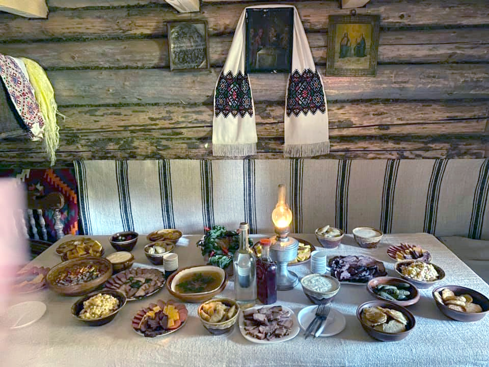 В дальньому лівому кутку великої хати стоїть ліжко. Воно покрите соломою та застелене домотканою веренею. Над ліжком, на стіні висить «півка» – килим та закріплено жердку зі святковим одягом. Між ліжком та простінком знаходяться лава зі спинкою. Поряд з нею – саркофагоподібна різьблена скриня. Вона прикрашена солярними знаками та скісними хрестами.