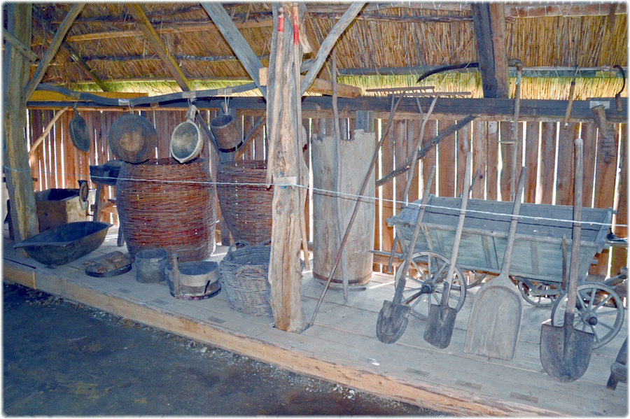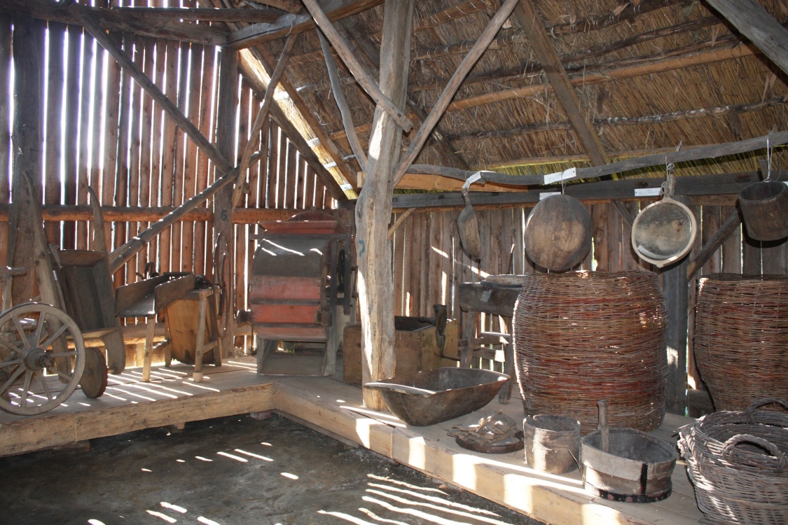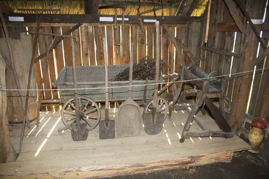 В стодолі, яку ми вже оглянули на подвір’ї, зібрано зразки сільськогосподарського реманенту, що його використовували в різноманітних сферах селянського життя.